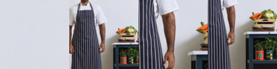 Essential premier bib apron. Self fabric neck tie and self fabric ties 75cm long. Size One Size