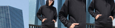 Neutral size label without branding, neck print possible, rip cuff at the hem, side pockets above hem, bomber jacket-style.