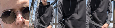 Rib cuff at the hem and sleeve opening, extended shoulder, hood with drawstring and metal eyelets, string with metal endings, open edges at the hem and sleeve seams, neck mirror, neck tape.