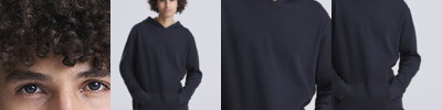 100% Organic hoody, with brushed inner and peached face. Kangaroo pocket, angled cuff detail and no drawcords for sleek look.