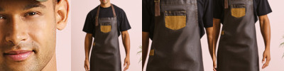 PR136 Division waxed-look denim bib apron with faux leather