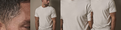 100% ringspun combed cotton. In transition to using organic cotton. Enzyme and silicone washed. Fitted style. Narrow ribbed collar. Side seams. Side vents. Twin needle sleeves and hem. 60°C wash.