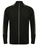 Knitted tracksuit top with contrast colour panels on outer sleeve. Contrast colour centre front zip. Zipped side pockets. Funnel neck and 1x1 ribbed cuffs. Semi-automatic lock zip sliders on all zips. Washing Instructions Wash at 40 degrees synthetic wash. Wash similar colours together. Do not use fabric softener. Cool iron on reverse. Do not tumble dry. Do not bleach. Do not dry clean.