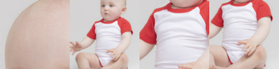 Short-sleeved baseball bodysuit in single Jersey. Contrast binding on the neck and leg opening. Contrast sleeves. YKK popper fastening at the bottom. Size tab only.
