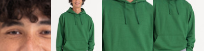 Soft cotton faced fabric. Brushed back fleece. Drop shoulder style. Double fabric hood with self colour drawcord. Front pouch pocket. Ribbed cuffs and hem.