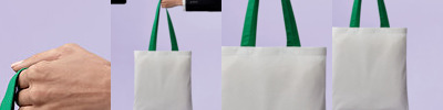 Two-tone cotton shopper. Short handles, 35 x 2.5cm. Inside hemmed sewing. Cross-stitches at handle. Perfect print surface.