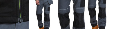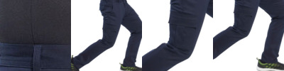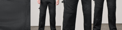 Contrast colour stitching. Contrast panels. Double rule pocket. Hammer loop. Reflective piping. Side pockets. Triple-stitched seams. Two back patch pockets. UPF 50+. Side elastic waist. Holster pockets. Gripper elastic on inner waist. Top-loading knee pad pockets. Smart phone pocket. D-ring. 12-pockets. Cargo pocket on side leg. Adjustable leg length. Reinforced panels . Durable polycotton fabric.