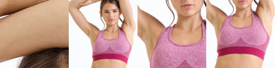 Seamless sports bra. Grown-on waistband. Body sculpting design detailing. Medium impact. We recommend using block out vinyl and inks.Product contains no branded neck or waist label. Removable Kimble or looped garment tags. Inner seam label holds important product information on one label with a second label containing brand information which can be cut-away.
