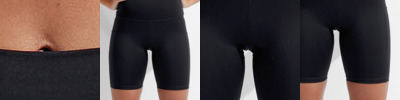 Legging shorts. Soft-stretch fabric. Deep waistband. Shorts finish mid-thigh. We recommend using block out vinyl and inks.Product contains no branded neck or waist label. Removable Kimble or looped garment tags. Inner seam label holds important product information on one label with a second label containing brand information which can be cut-away.