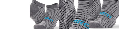 Antibacterial yarn. Fast-dry. Ribbed ankle cuff for secure fit. Coolmax® yarns keep cool and dry. Low cut. Contrast colour. Cushioned heel and toe.