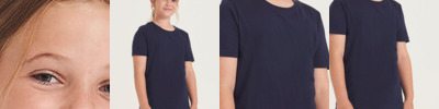 100% Organic cotton. Single Jersey. Ribbed collar. Taped neck. Side seams – non tubular body. Twin-needle detail at hem and sleeve. Set-in sleeves. Crewneck. Fashion fit. Size label only for easy rebranding.